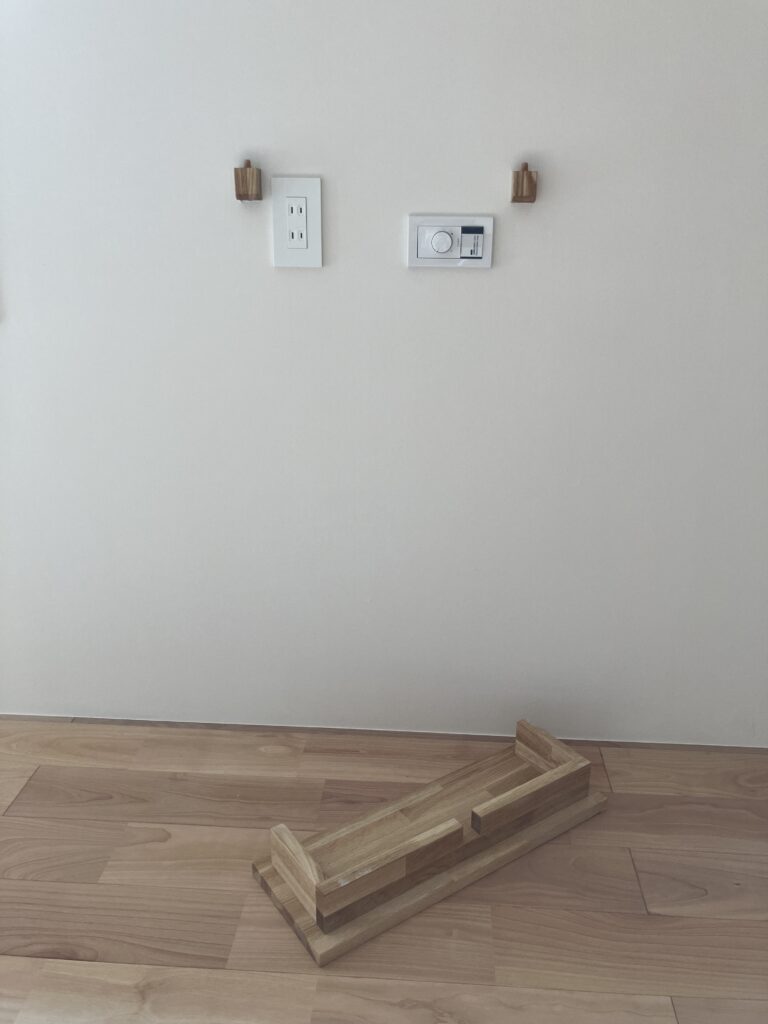 向井先生、人間用にもオリジナルの仕掛けを寝室に造られました。ベッドの頭の方に、照明のスイッチとスマホ充電用のコンセントのカバー。カバーの上に、スマホが立てかけれられる様になっています。便利そうですね。