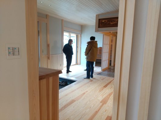 少し遅い挨拶になりますが、あけましておめでとうございます。本年もよろしくお願いいたします。令和4年初の完成見学会、コロナの第6波ではないかと言われる中、ya・ja様のご厚意で昨日から2日間開催させていただきました。ご案内を年末の忙しい時期に送らせていただいたせいか、なかなかご予約が入らなかったので、せっかくの「ミノワが誇る高気密高断熱・土壁・自然素材の家」なのに~なんてこった勿体ない~💦と焦っていましたが、間際に多くのご予約をいただき、ご来場いただきました。ありがとうございます。