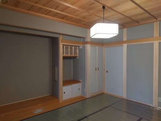 和室の造作は細部まできめ細やかな仕事がしてあります。奥様は、いろんなショールームに通われたそうですが、「ショールームは間取りとかデザインはオシャレに造ってあるけれど、うちの家が一番きれいな仕事をしてもらっている👍」と思われたそうです。k池さん、kさん、h典さん~一番の誉め言葉いただきました👍👍👍