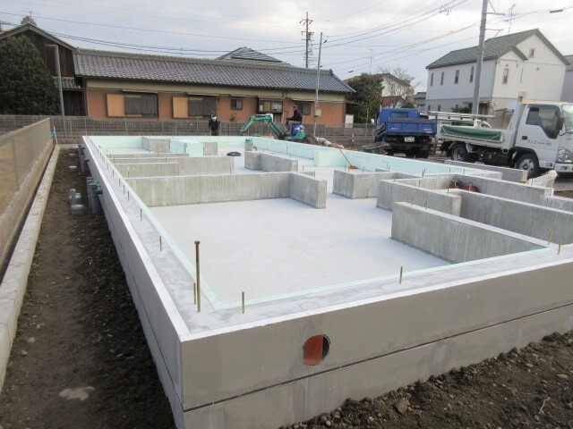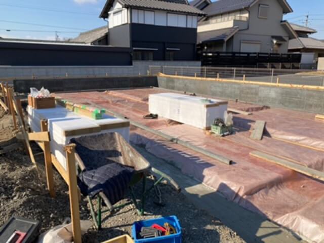 立上りの断熱材は内側(ミラフォーム厚み50㎜)、外側(パフォームガード厚み50㎜)両方に断熱材が敷設されています。