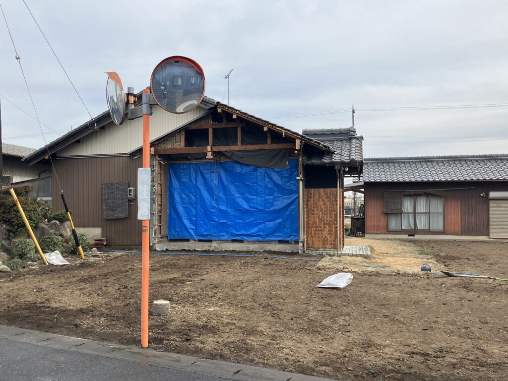 昨日から解体工事が始まりました。北東角の車庫を壊し車を入れて、離れを解体しています。風があると、瓦の下にあった土が風でいろんなところに飛散するので悲惨な事になりますが、今日は風が無く作業しやすく良かったです。