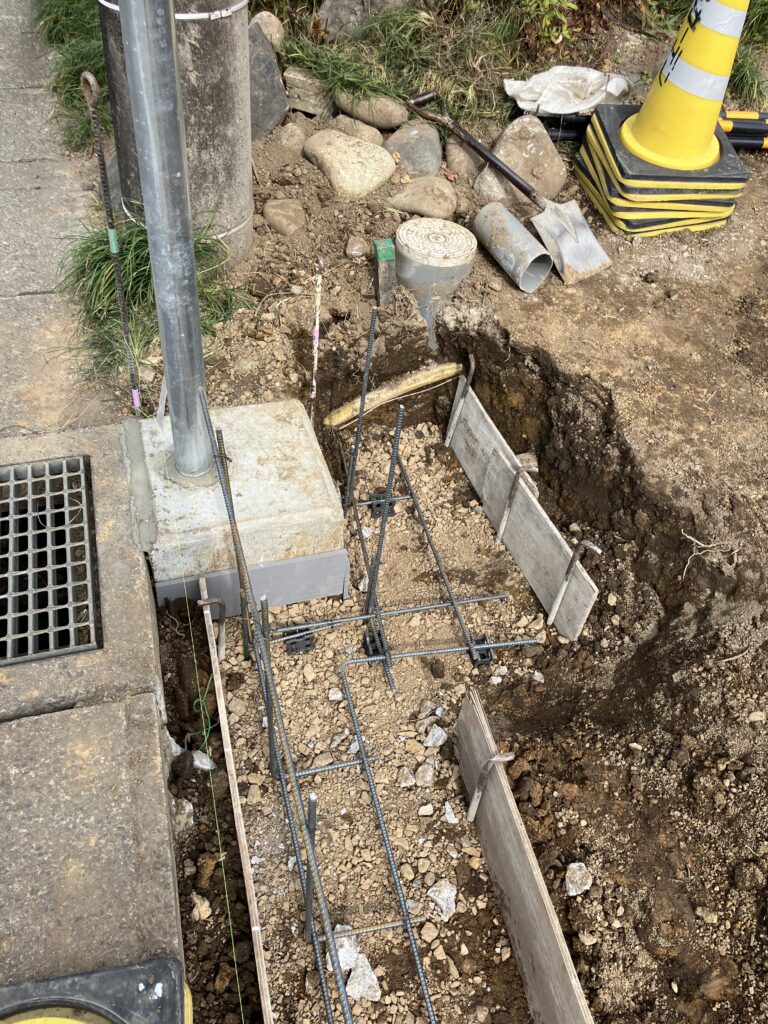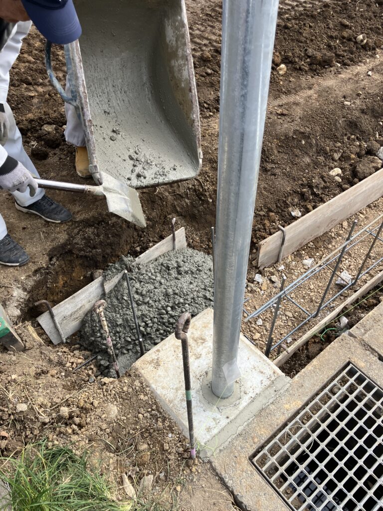 昨日、仮設の電気を引き込むためのポールを、fケイ電気さんが設置しに来てくれました。