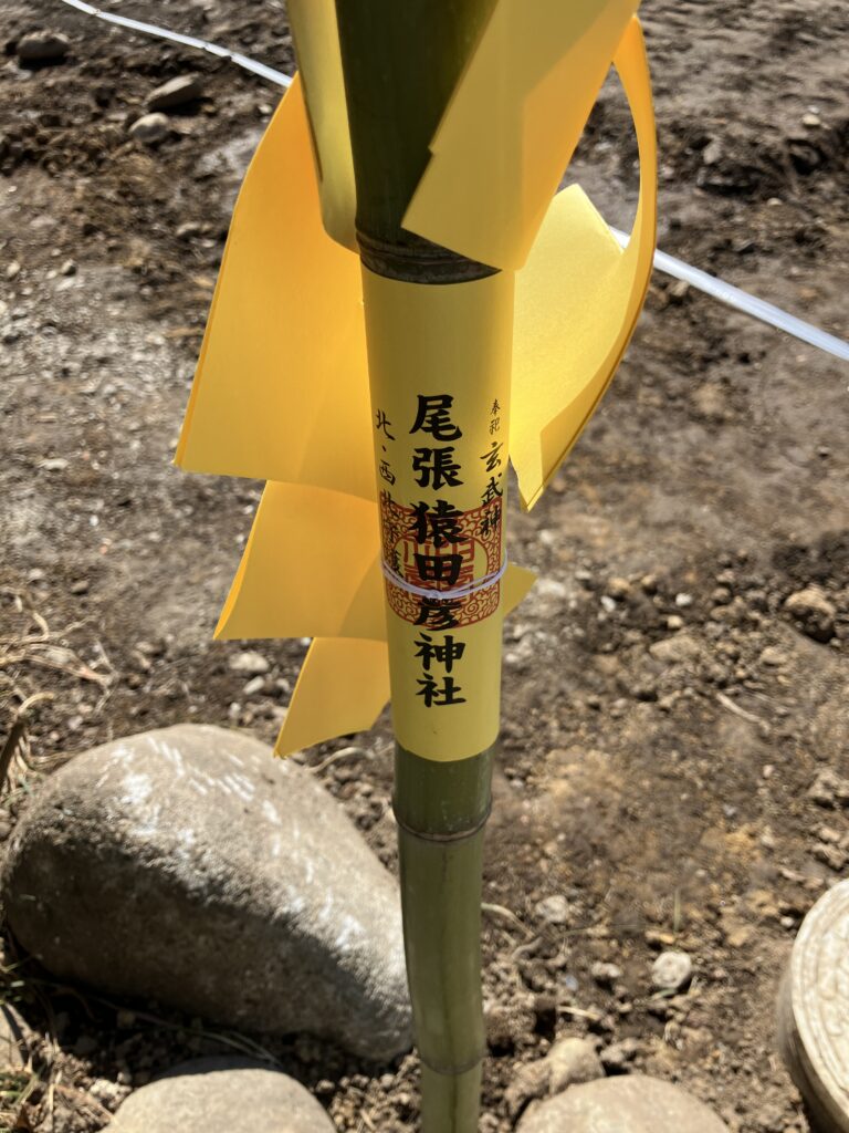 四方に置かれる御幣は、色によって配置する場所が決まっており、司る神獣や意味もあるのだそう。日本は度重なる災害によって、いろんな神様がいて、本地垂迹と言う考え方が広まったとか。私達も、こうしてh様の地鎮祭に参加する事ができる事に感謝しつつ、最後まで無事にh様が健やかに過ごしていただける家を建てることができますようにと願いを込めさせていただきました。