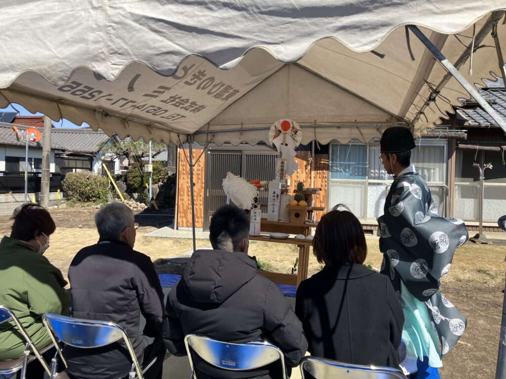 昨日、強風が吹く中、地鎮祭を行いました。御祈祷中の間は、気のせいか風が少し和らいでいた気がします。寒くて強風ではありましたが、良いお天気に行えたので良かったです。ミノワでも、このところ地鎮祭が続いており、地鎮祭嵐が起こっています(笑)