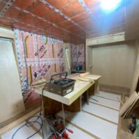 天井の断熱材敷設、気密シート張りも終わり、その間隙を縫ってシート内を通る電気配線も行われました。連日この○○暑い猛暑の中、直上方向の断熱ができたという事は現場自体が『ある程度』作業しやすくなっていると思われます。