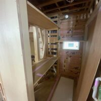 2階へ上がる階段が設けられました。階段下空間は余すところなく使い切るのがm井先生の設計の真骨頂。今回も階段下は4方向から使えるような収まりとなっています。