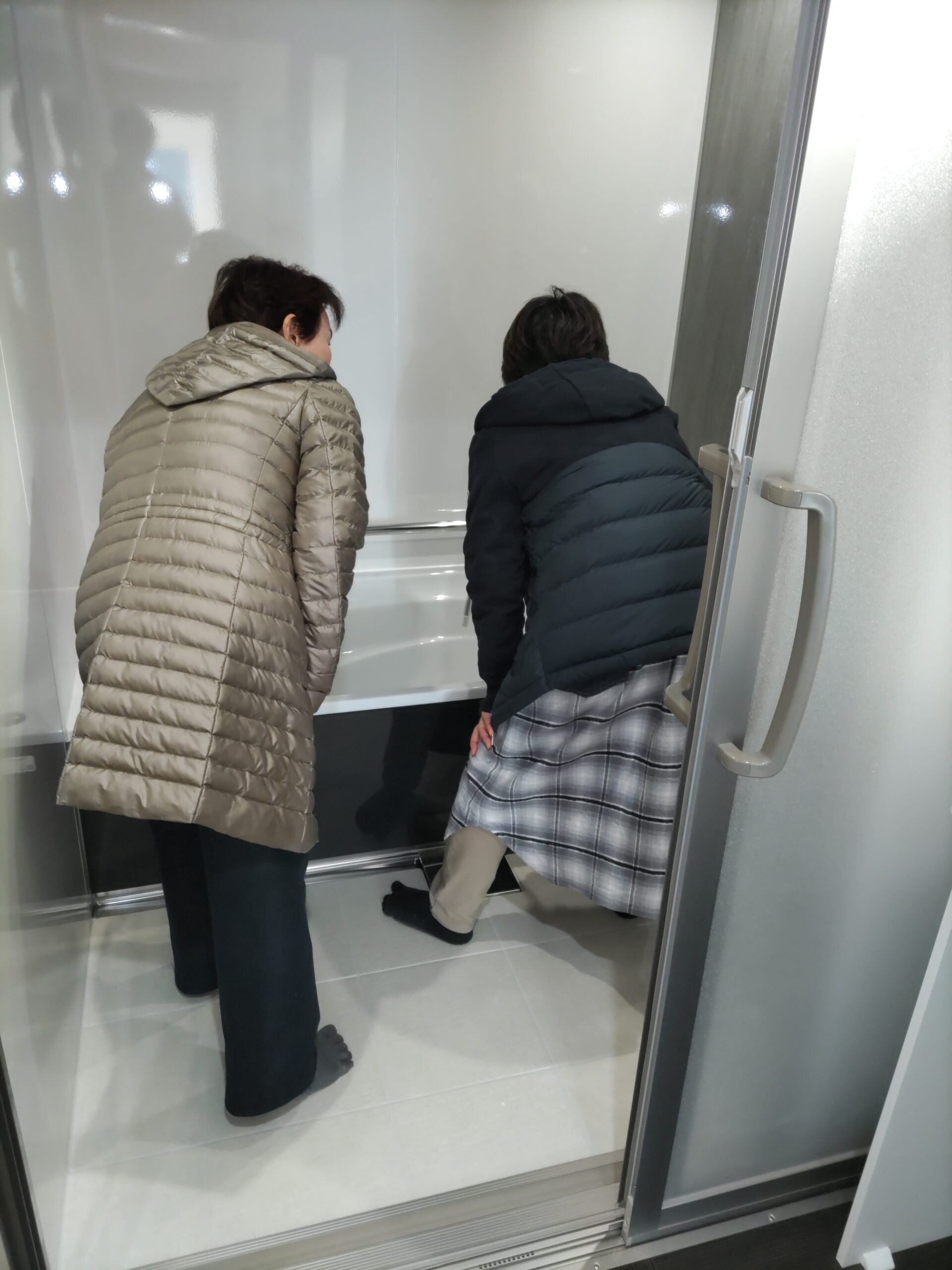 ユニットバスの発注前の色目の確認に某T社のショールームにやってきました。こちらのショールームでは大画面のイメージCGで色目の組み合わせを確認することができます。これによって色決めもスムーズに進んでいます。とはいうもののやはり選択肢が多いと非常に迷うもの。思い切って決定する必要があります。
