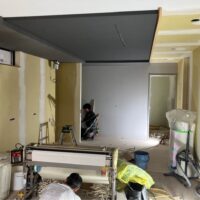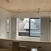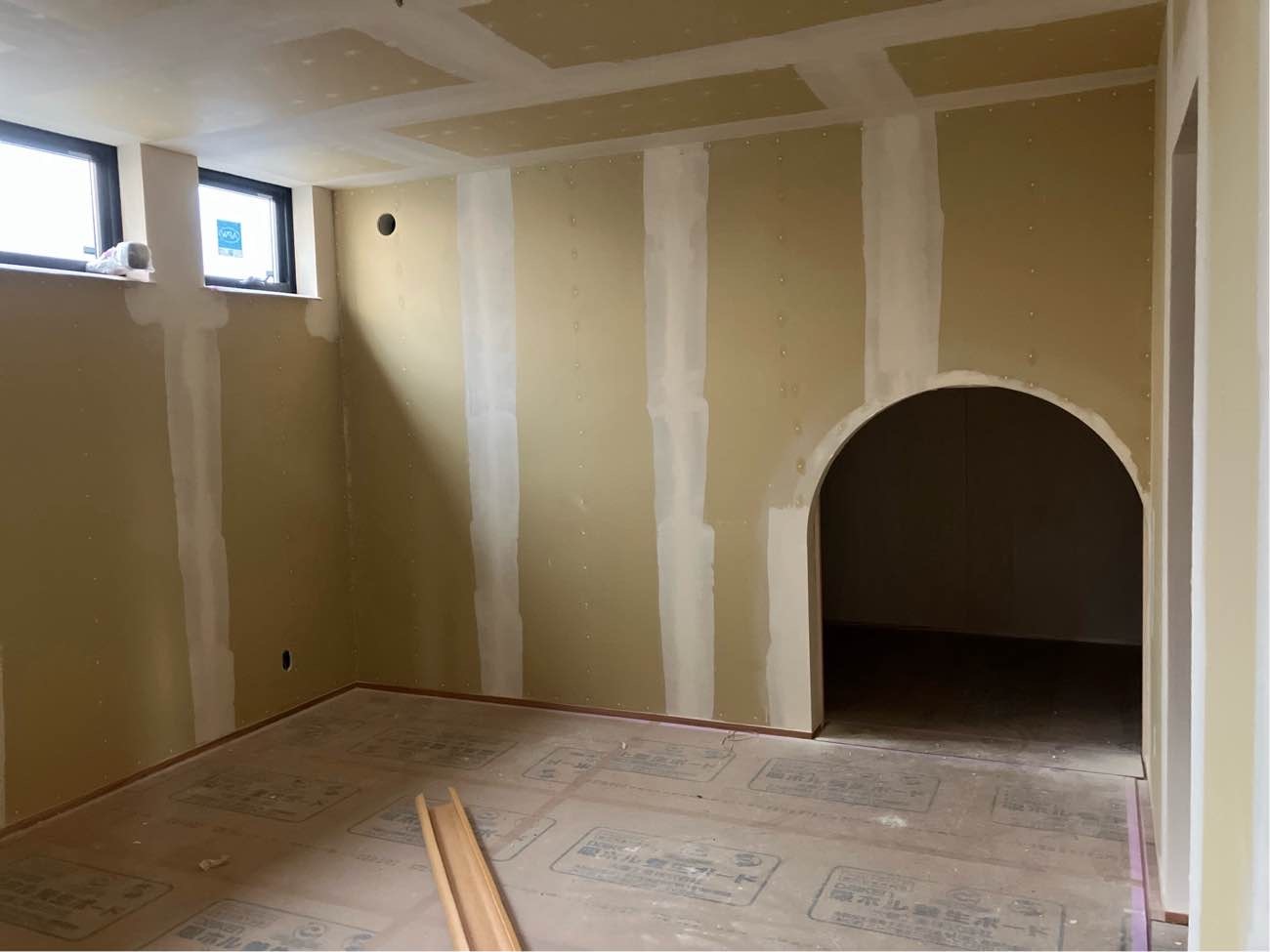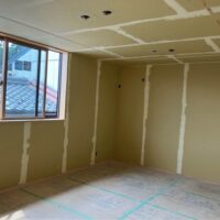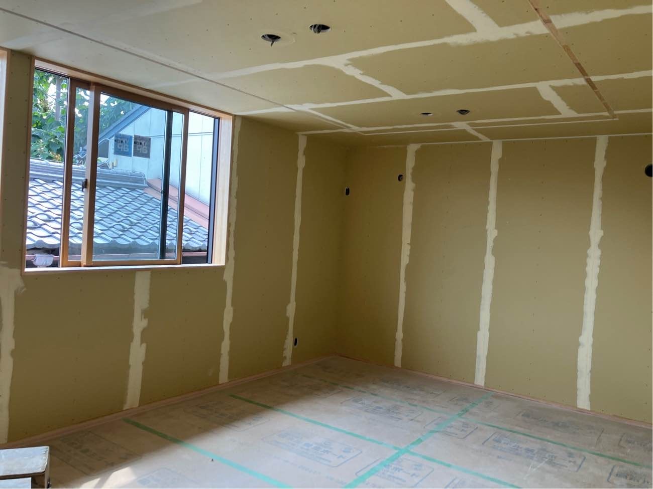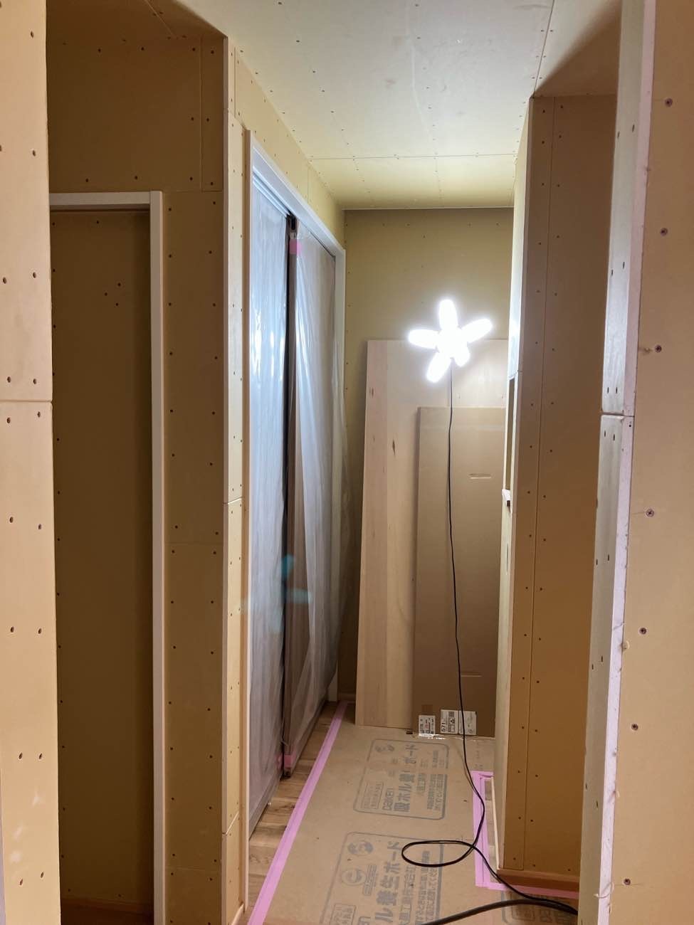 離れは、プラスターボードが張り進められています。木工事(大工工事)もゴールが目の前に見えてきた感じです。