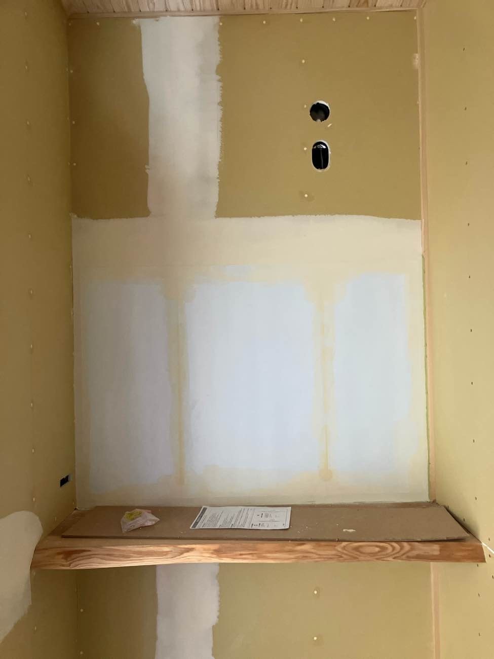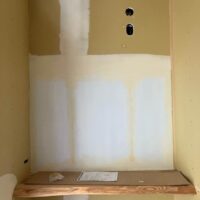 今回洗面は、脱衣室と廊下に1台ずつ設置され、廊下は使う頻度は少ないけれど見栄えを良くしたいという事で、費用対効果でかなり悩まれていましたが、最近出たLIXILさんのカスタムバニティと言う商品が造作風で見た目もオシャレ、お値段もお値打ちに入るという事で採用されました。確かにいろいろ選べる化粧台、いいネーミングです👍フロートタイプで床がみえるので、見た目や掃除のしやすさなどから、壁給水壁排水にしたいという事で、配管用のカウンターを造っています。