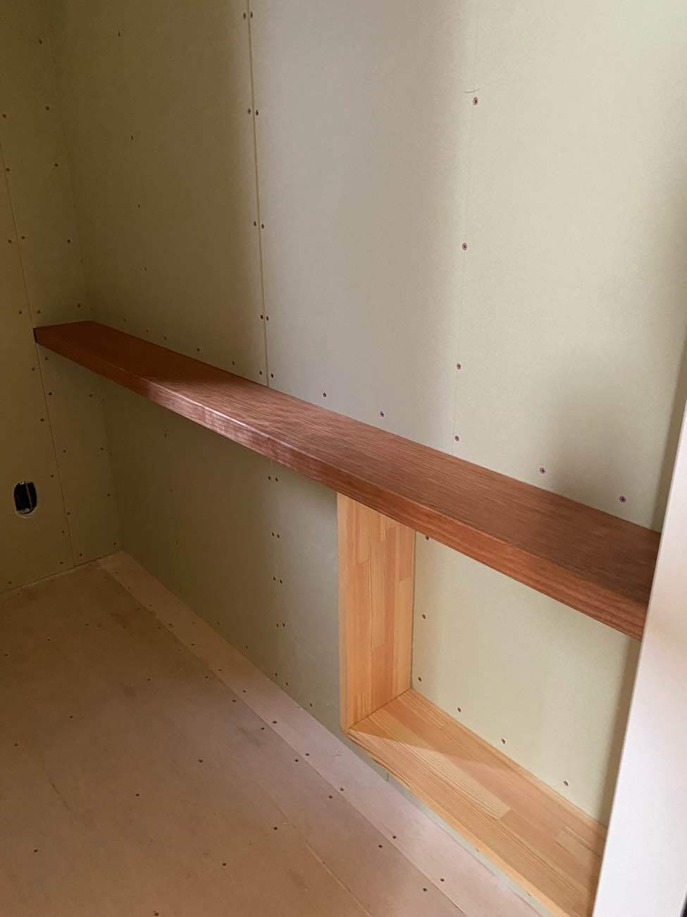 先日、k池大棟梁により工場で加工された棚板達も搬入されました👍木工事完了です。