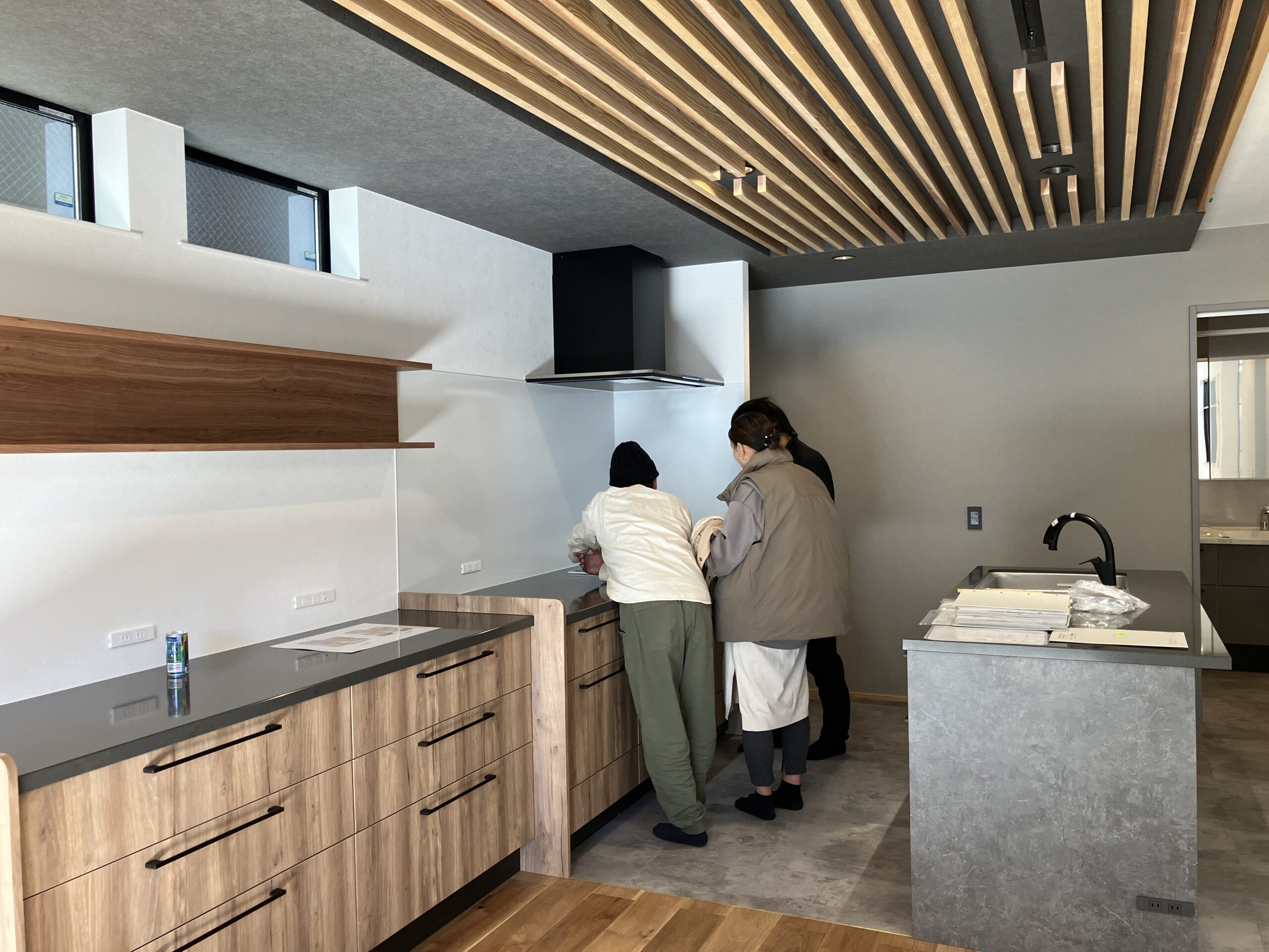 1階も、先日選んでいただいた材料が、キッチン前カウンターとなりました👍外周部の基礎立ち上がり部分に、可能な限り断熱材を施しています。離れは床に断熱材が施されていないので、少しでも足元が冷えないといいなぁと思います。