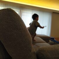 本日も元気に遊びまわる次男SOUちゃん。大量のおもちゃのある部屋も含め床材は硬めの栗のフロアを使用していますのでf様によればおもちゃを落としたりしてもあまり気にならないとの事です。