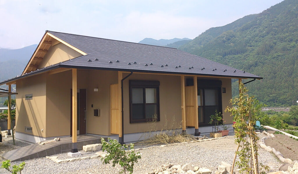 名湯下呂温泉市街を眼下に臨む高台に建つ平屋建て住宅