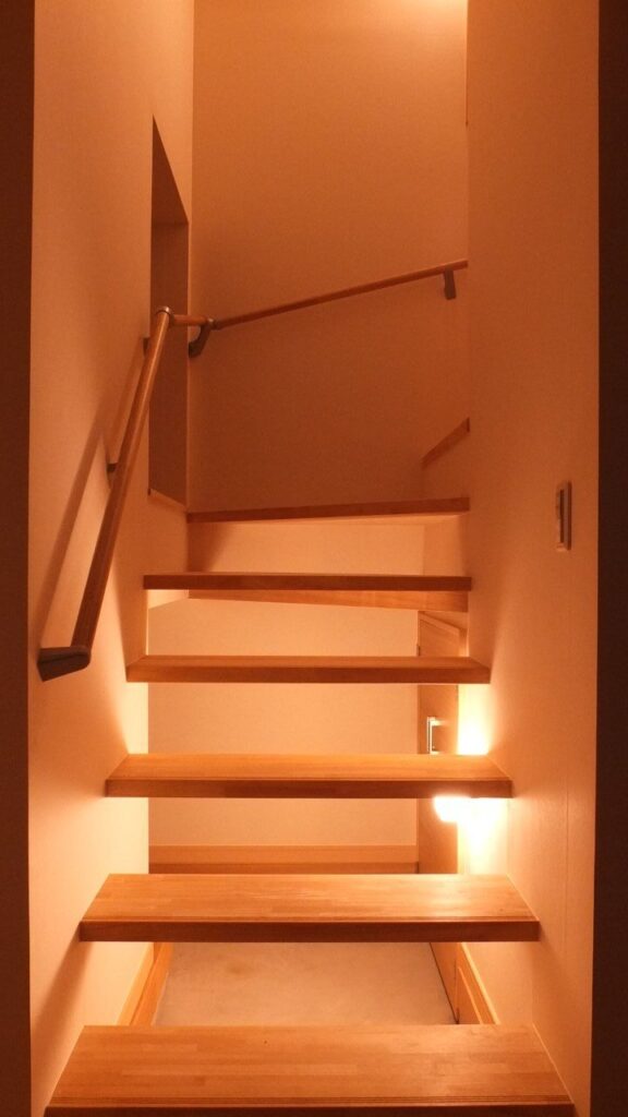 間口、奥行の制限や必要居室、駐車場などの条件から、空間の広がりを上方に求め、3階建ての住宅としました。建築計画では、限られた空間をいかに広く開放感が得られるようにできるかに重点を置き、営業・設計・現場そしてnk様が共に持てる知恵を出し切って建築を造り上げていきました。