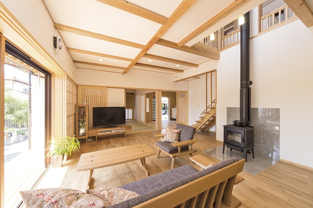 ロフト付寝室と薪ストーブが奏でる、やさしい木の暮らし