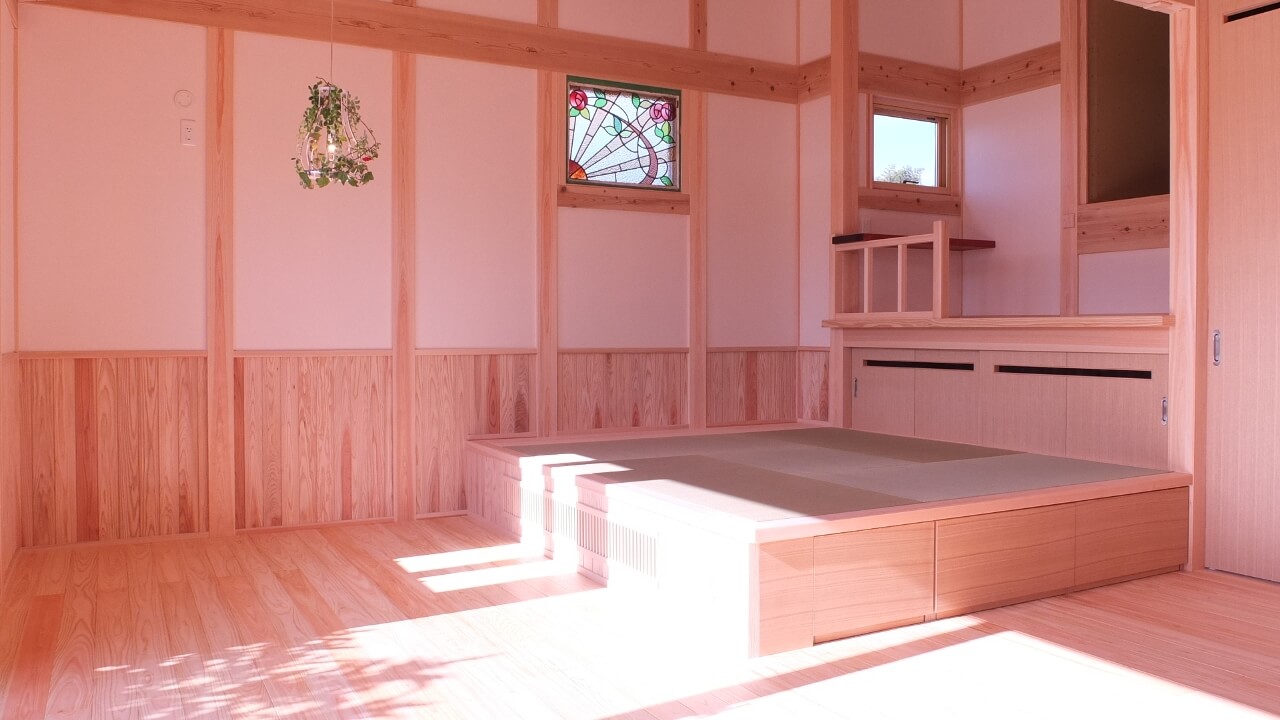 | 内装 | 床:桧材 内壁:和紙クロス、杉材腰板 天井::杉材 |