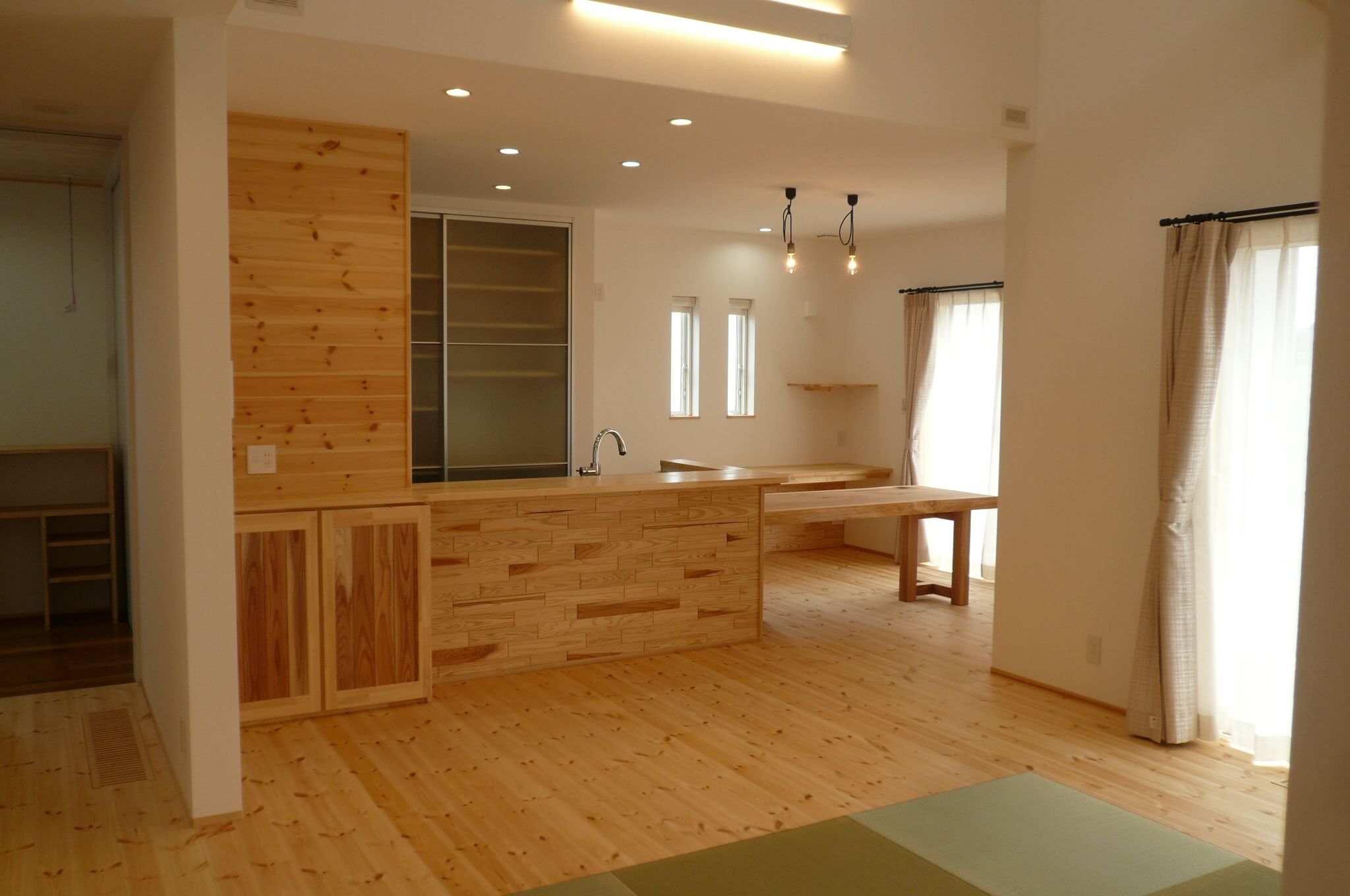 開放感あふれる、木の表情が映える家