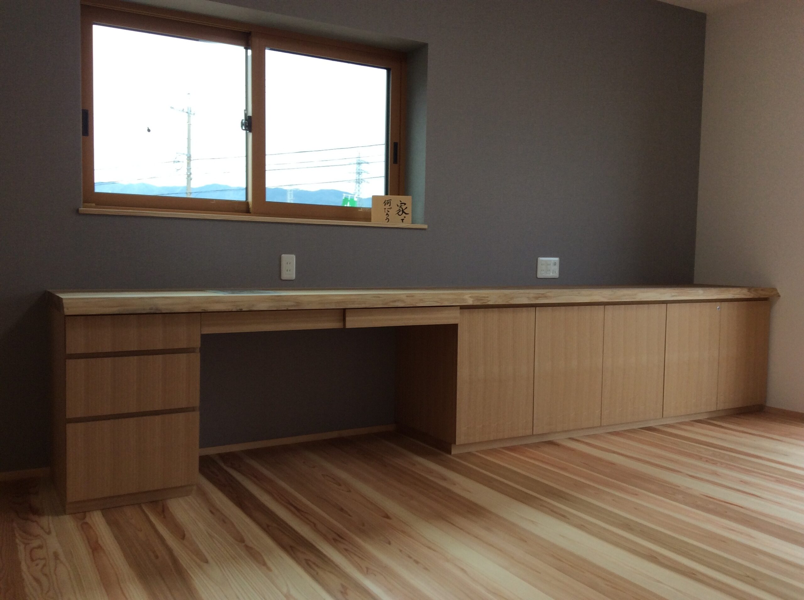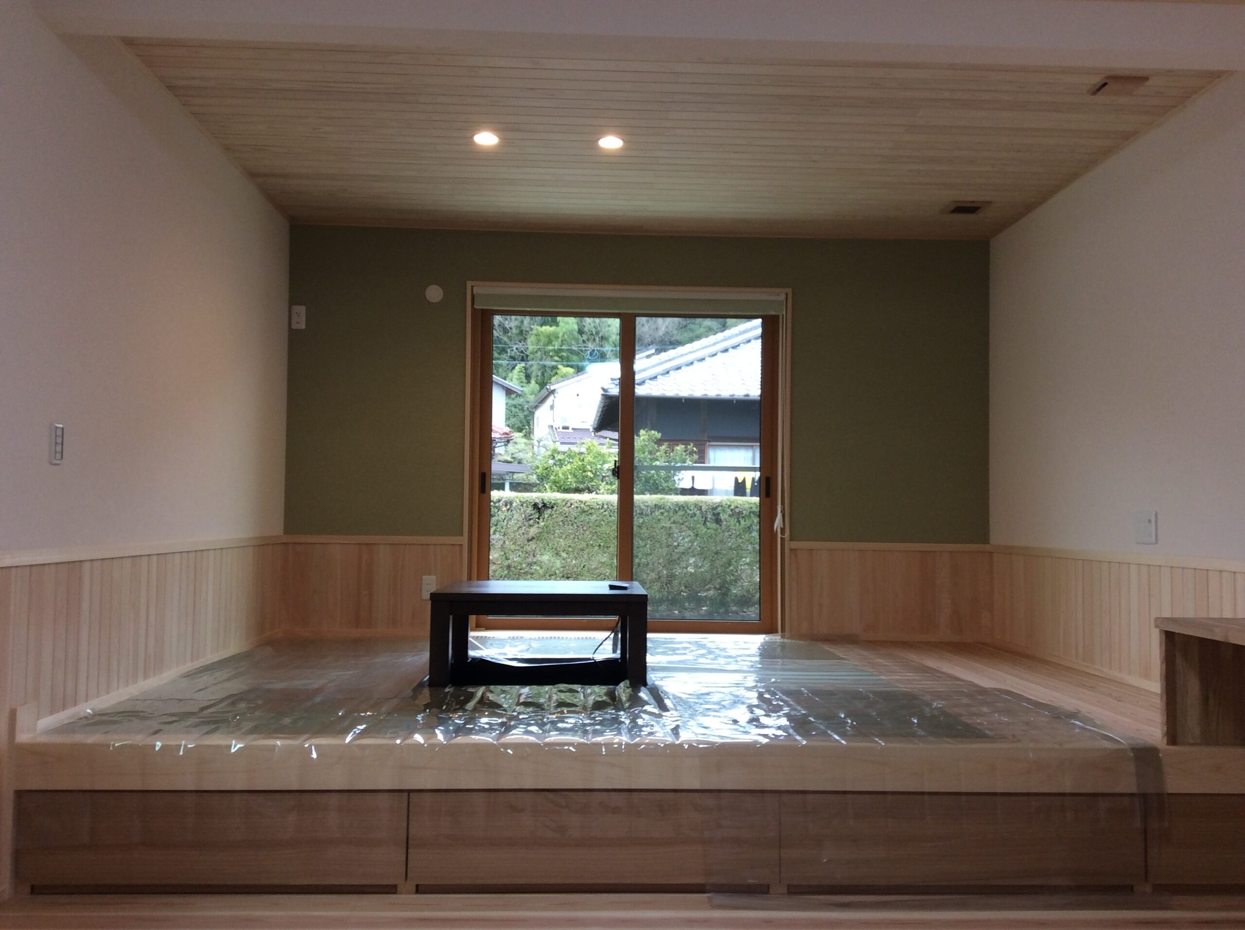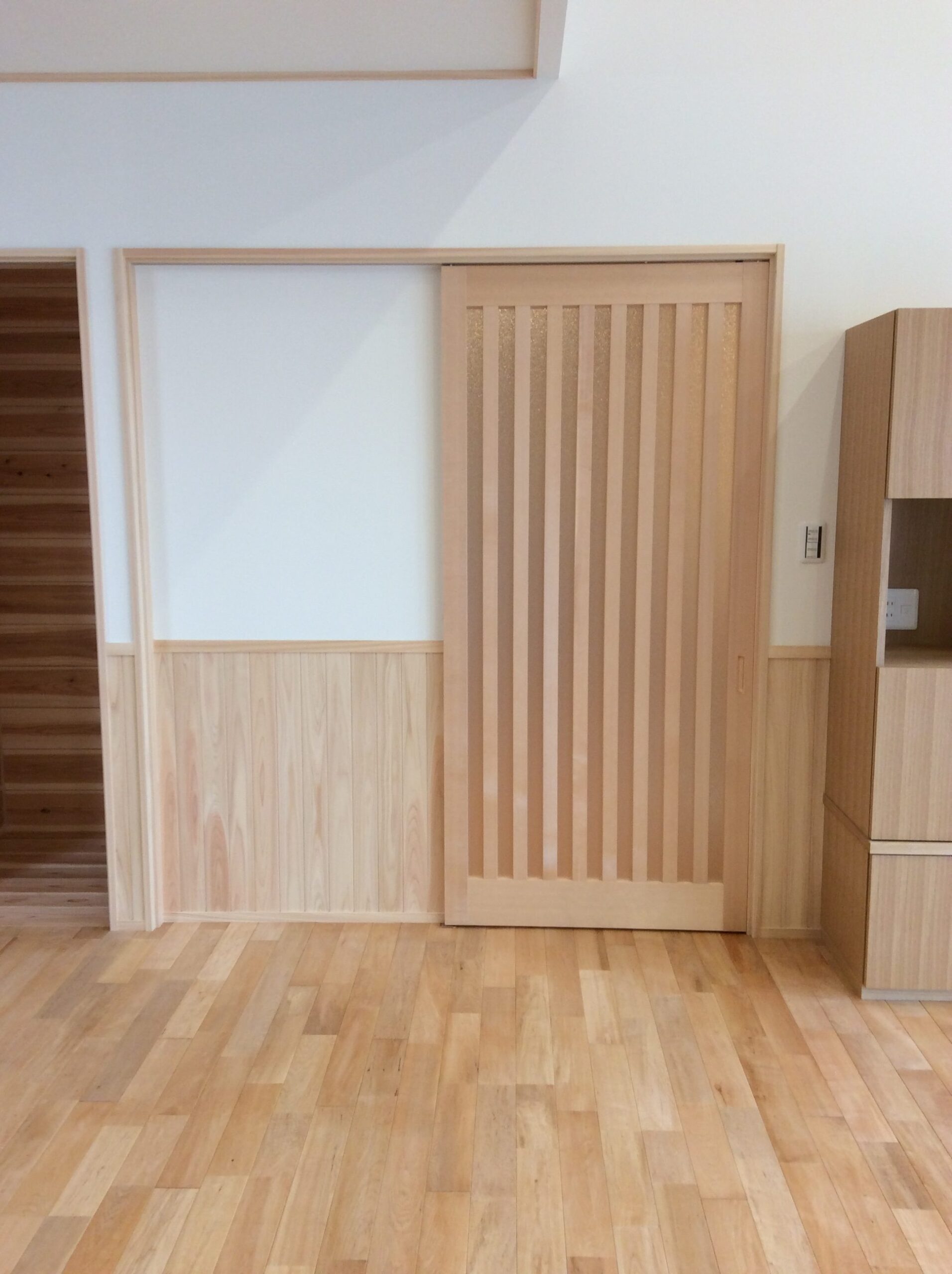 | 内装 | 床:メープル、杉材 内壁:珪藻土塗、サワラ羽目板、エコクロス、桧羽目板(腰壁)貼 天井:エコクロス貼、桧羽目板 |