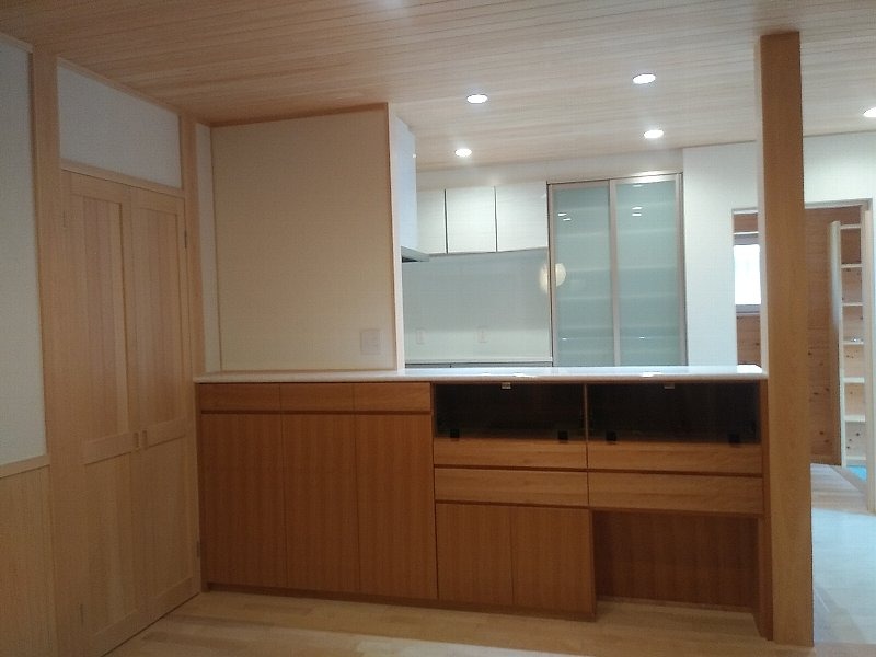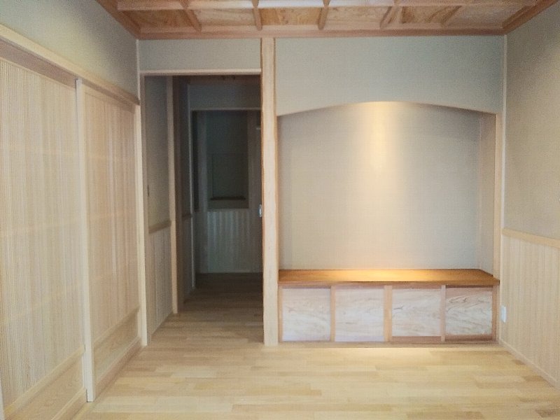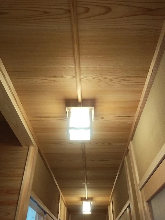 壁:高野槙羽目板、サワラ羽目板、パイン羽目板、桧羽目板、エコクロス