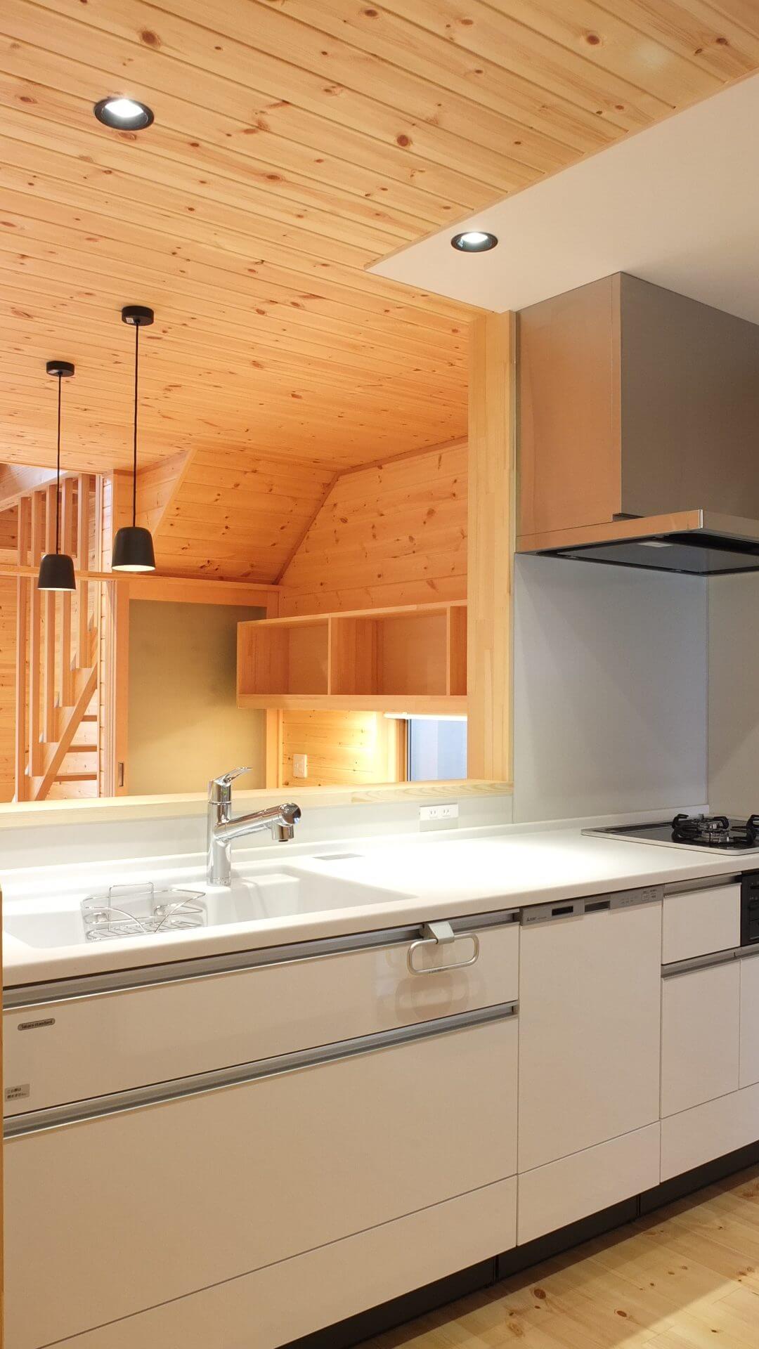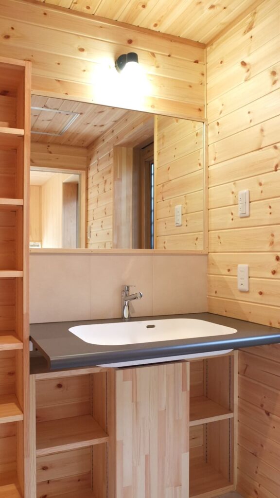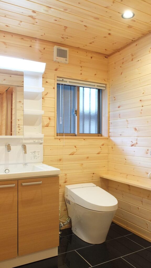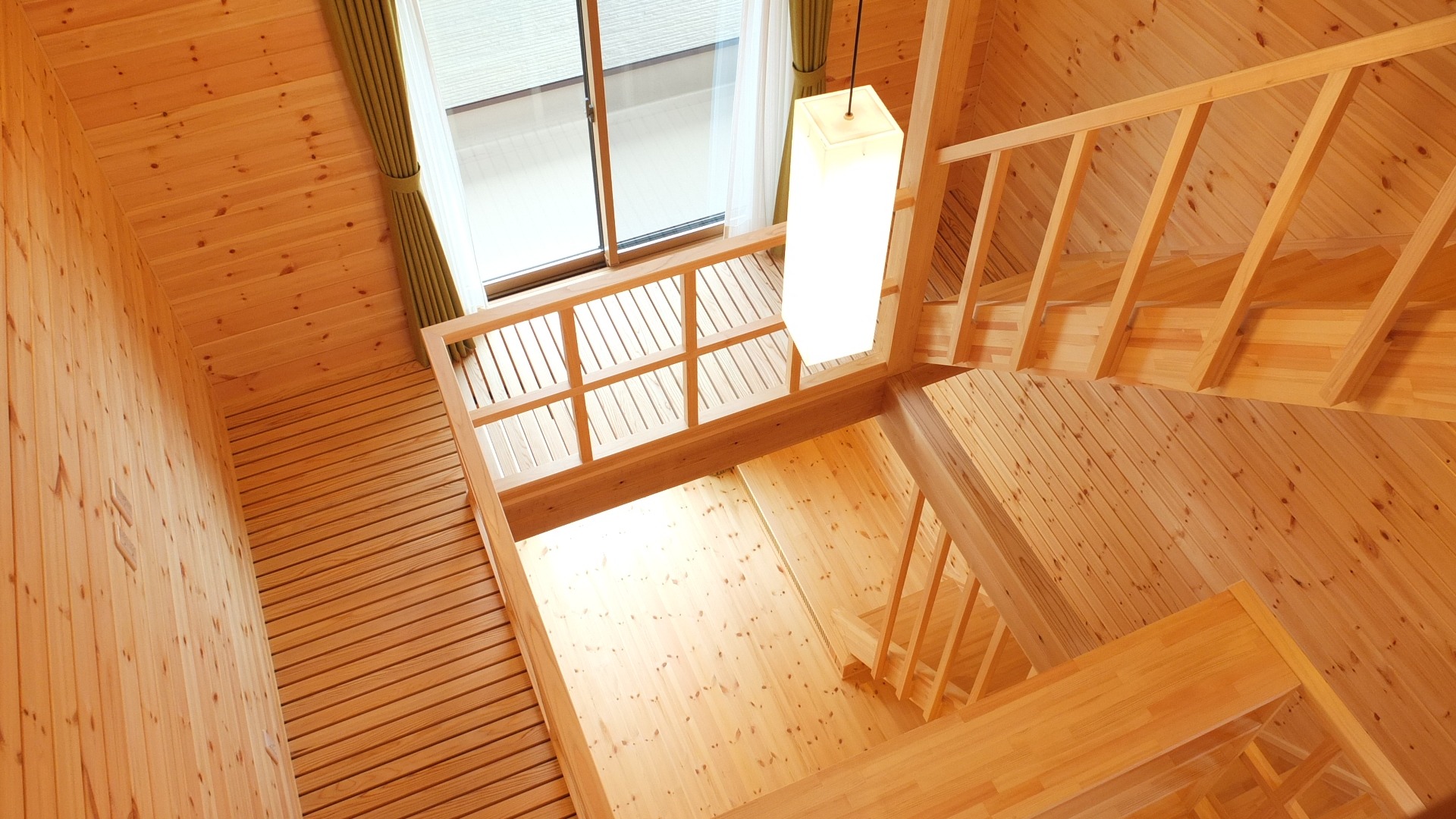n様のご実家をリフォーム工事された設計士さんとの打ち合わせで、ご実家同様、室内の内装はほとんどすべてパインの羽目板やフローリングで統一。一見山小屋風の屋内と南側の自然豊かな眺望も相まって、自宅にいながら別荘地に来ているような感覚をおぼえる空間となりました。