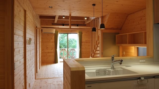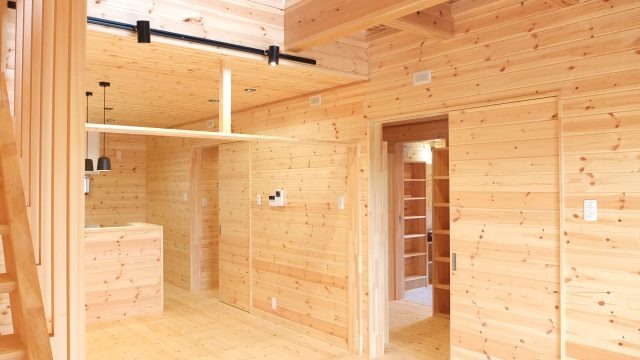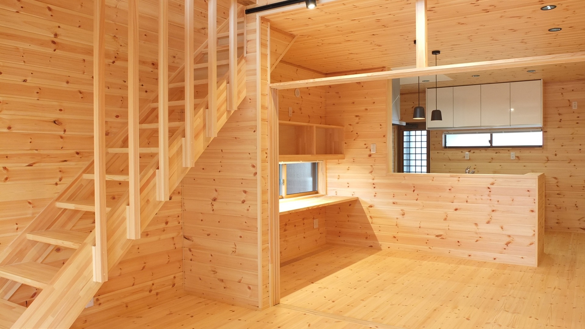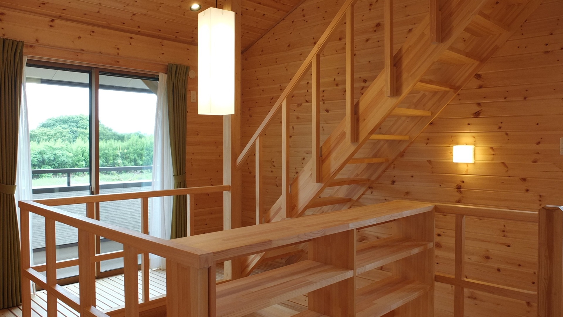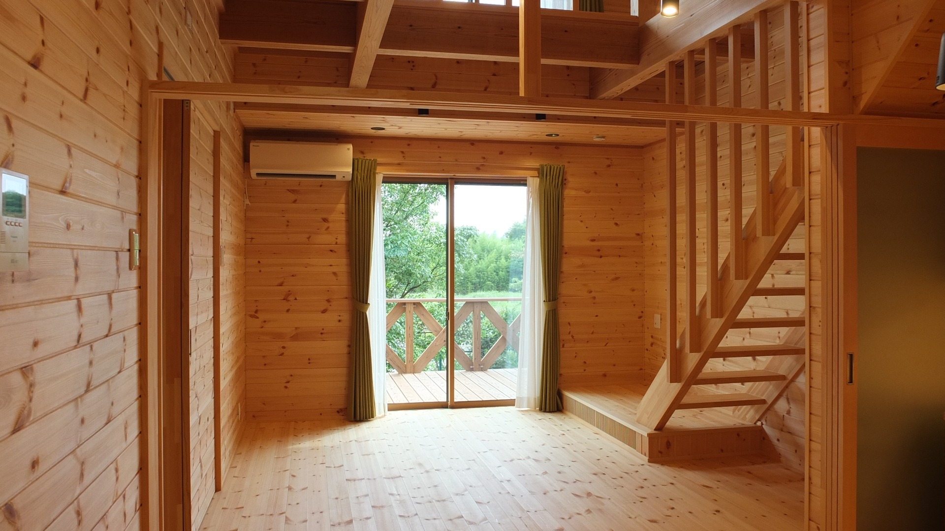 | 内装 | 床:パイン材 内壁:パイン材、漆喰塗 天井:パイン材 |