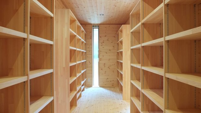 どこをとっても木の香り薫る空間と大容量の書庫のある家