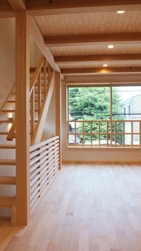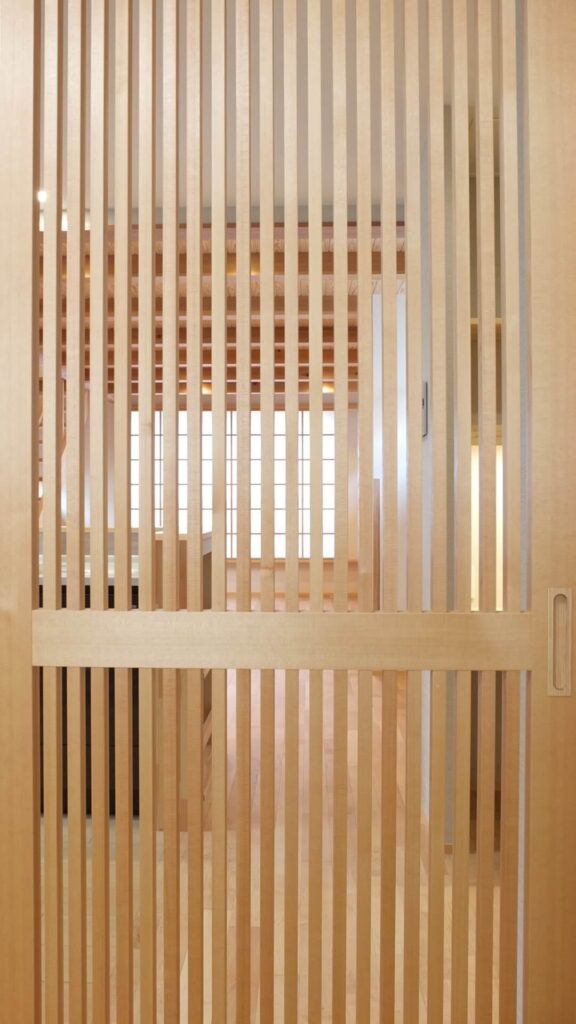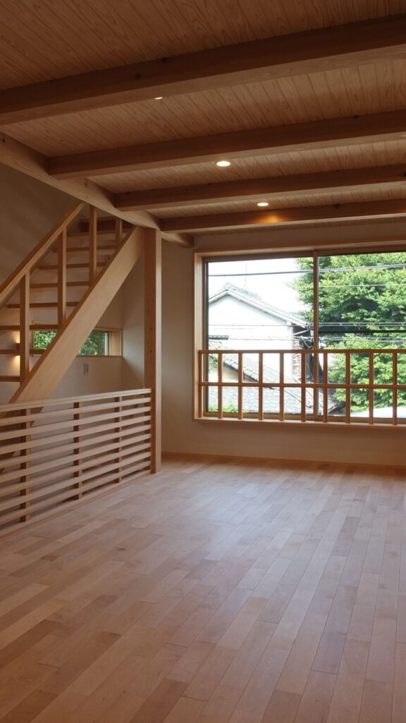 しかし、この木質空間を何とか実現したいとのyoyo様のご希望もあり、国土交通省告示によるサッシの開口部制限を行う事で『準延焼防止建築物』として申請、各箇所で自由に木質インテリアを施す事ができました。