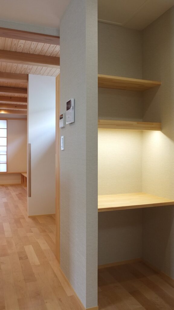 | 内装 | 床:メープル材、パイン材 内壁:エコクロス貼、杉材 天井:エコクロス貼、杉材 |
