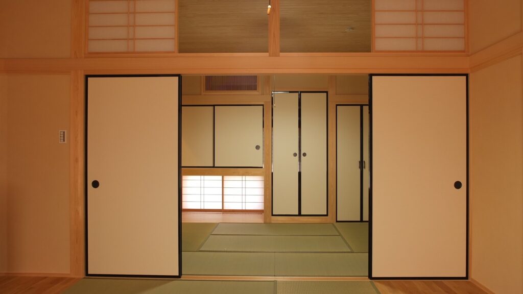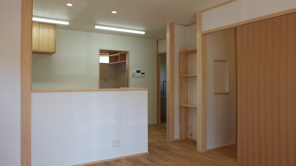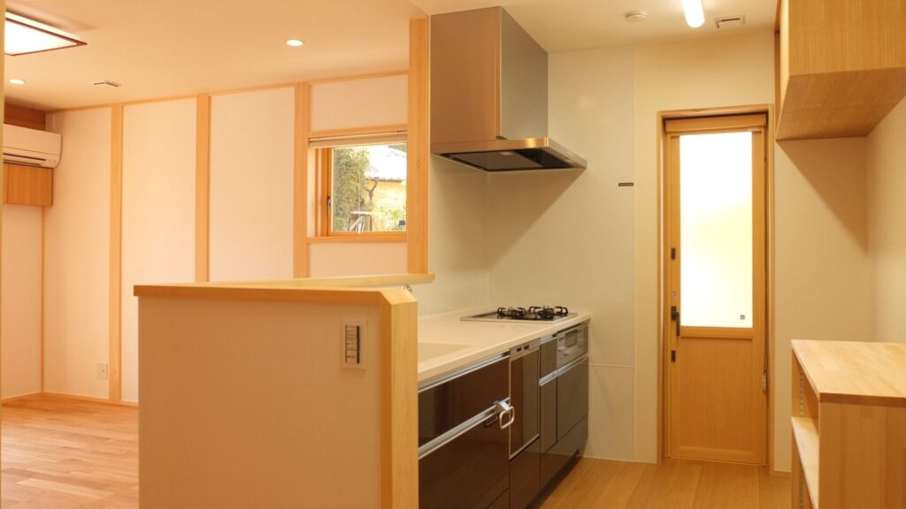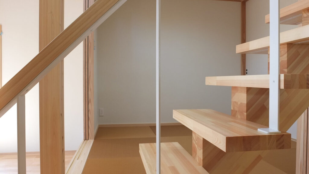 玄関も各々に構え、完全に分離した二世帯住宅となりますので建築基準法上は『長屋』という名称の建築物となります。
