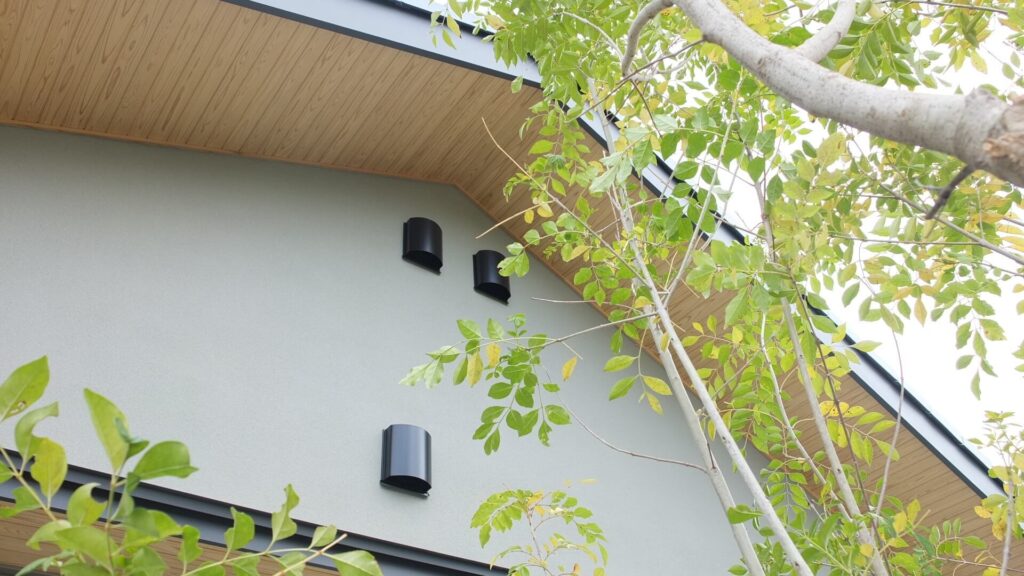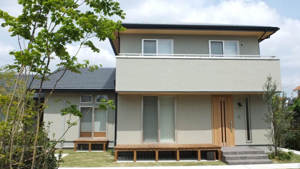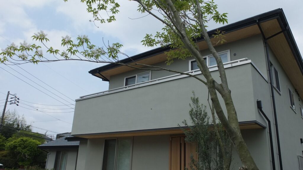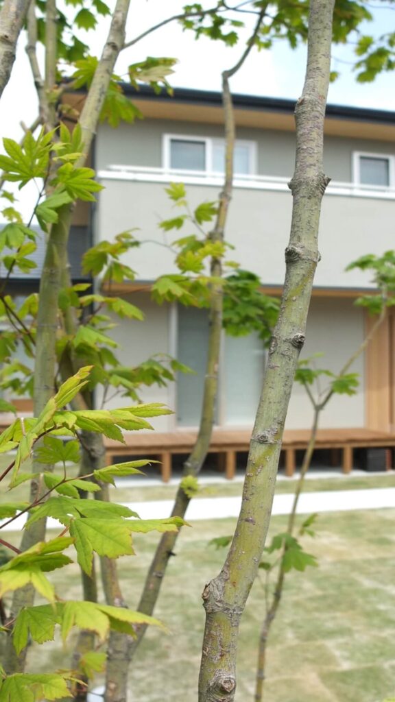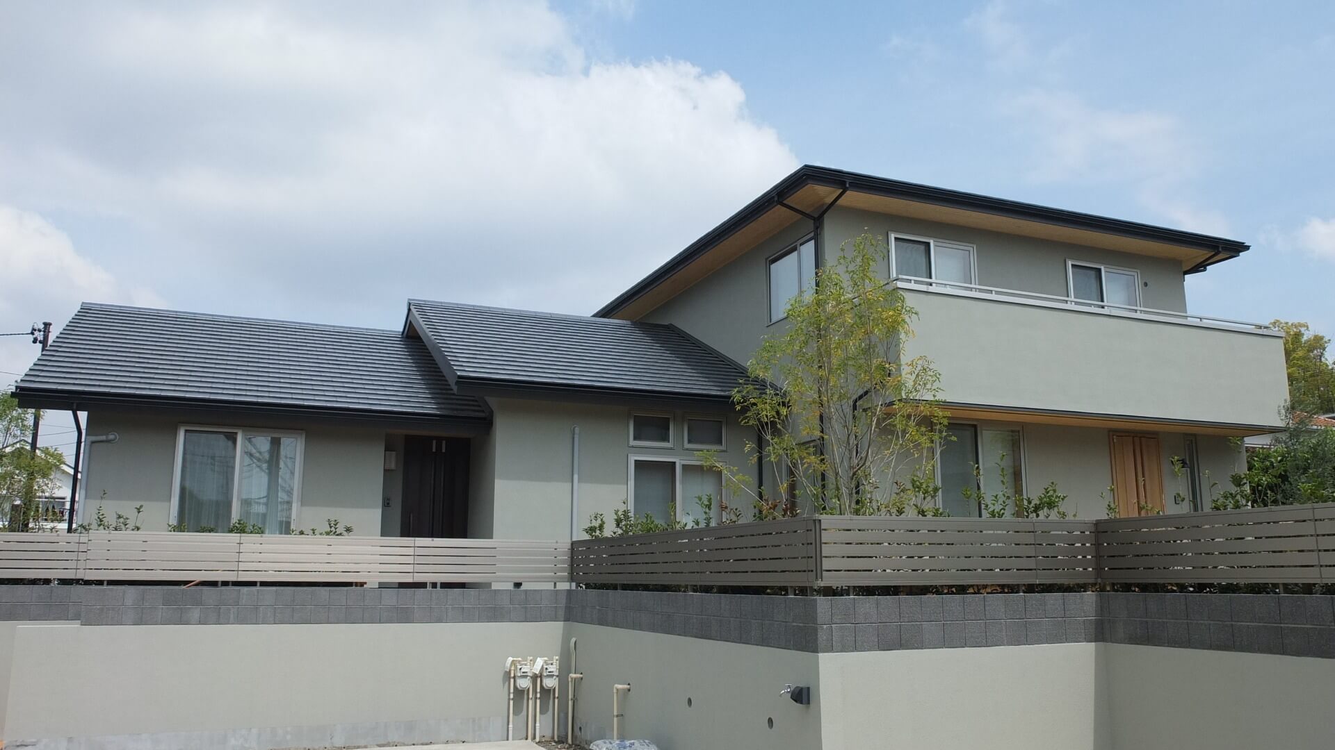 周囲の環境に溶け込む色彩で落ち着いた雰囲気を醸す二世帯住宅