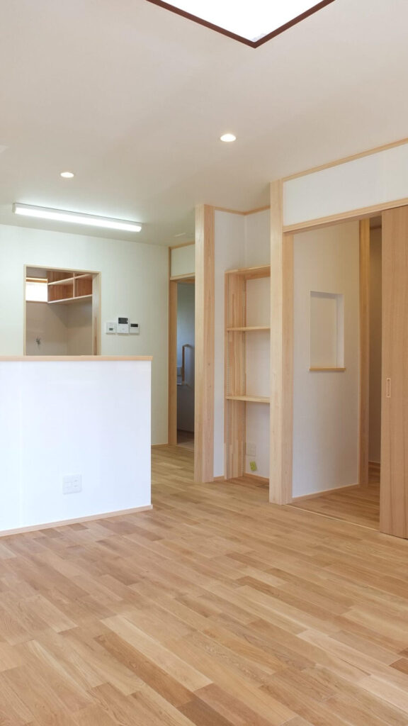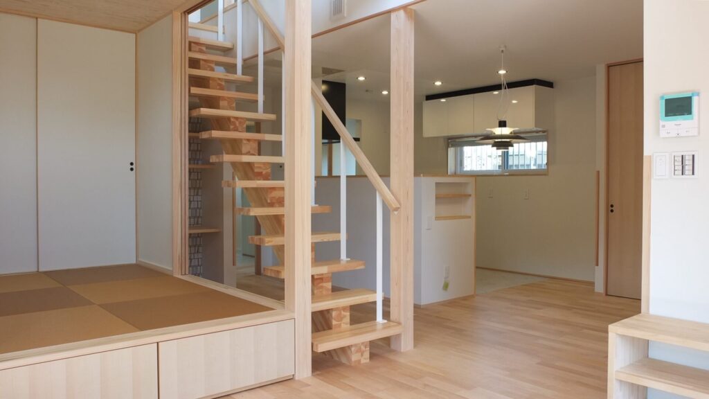 インテリアは西世帯で和風、東世帯で洋風と東西で趣が違い、2軒の現場を同時進行しているような感覚でした。
