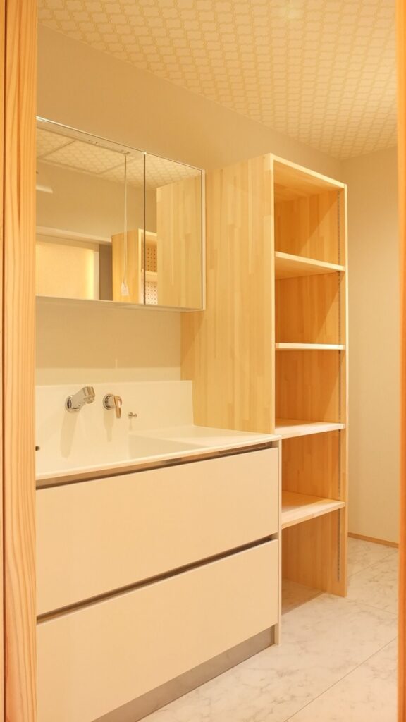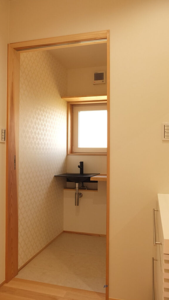 y様とは内装外装、部品や収まり、色柄に至るまで熟考に熟考を重ねてお打合せを続け、細部までこだわりぬいた住宅となりました。