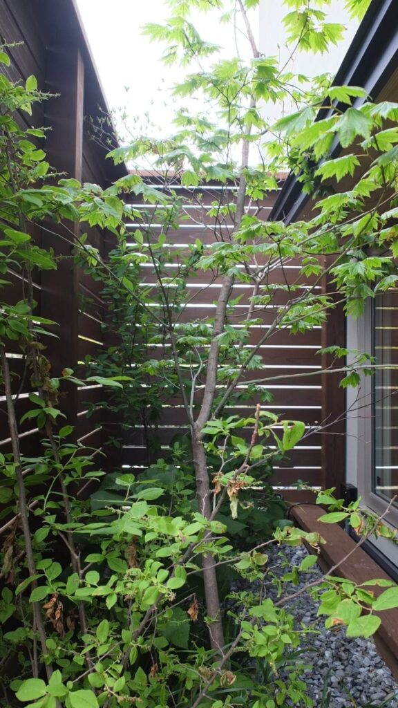 敷地緑化するための植栽の工事は、y様のご知人の造園業の社長s様に依頼されました。建築の事はさておき、外構に関してはほぼ素人同然の私に『なるようになる、やれるようにやる』と力強くフォローしていただき、植栽の知識や外構工事の工夫などもいろいろと教えてくださいました。工期も迫り、頭の中には焦燥感しかなかった私にとってはまさに地獄に仏の心境でした。この場を借りてお礼申し上げます。ありがとうございました。