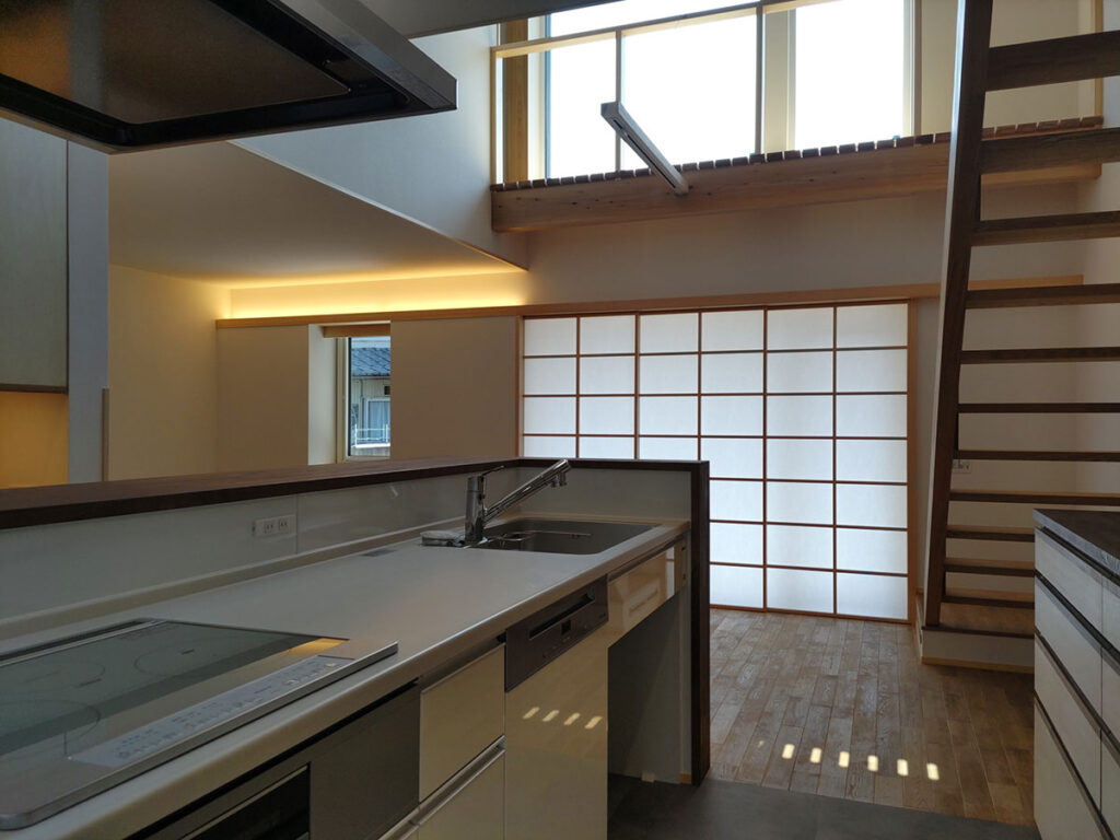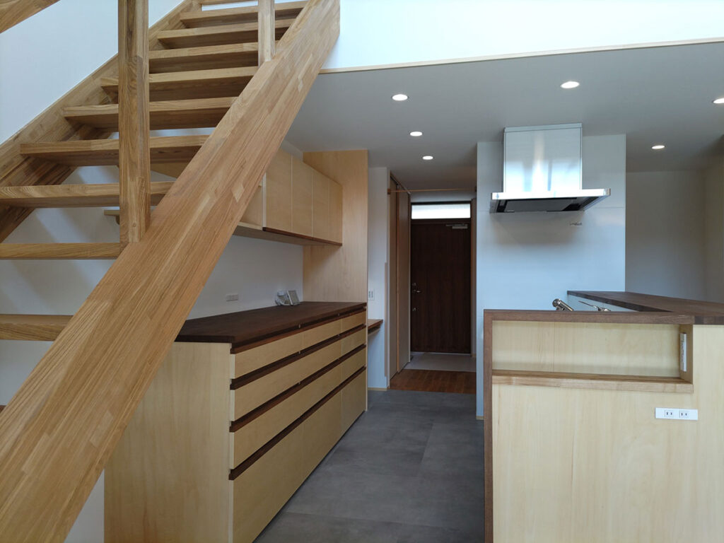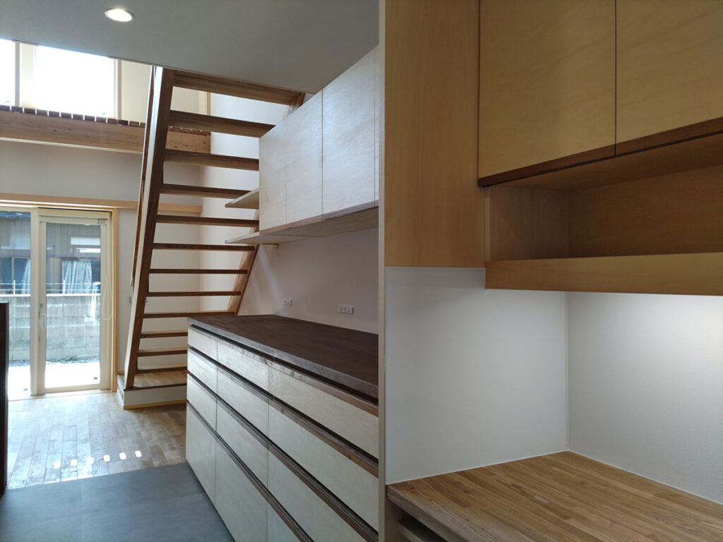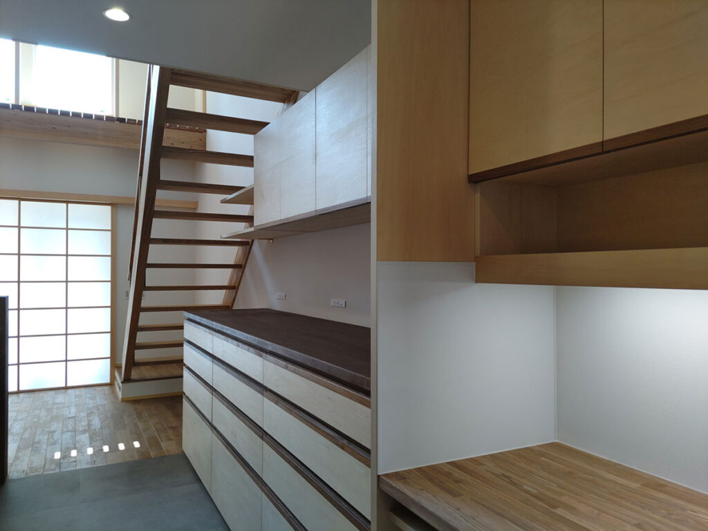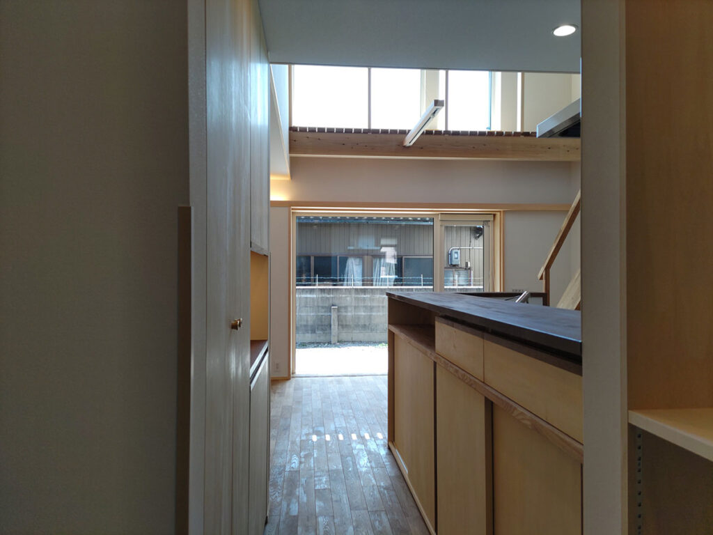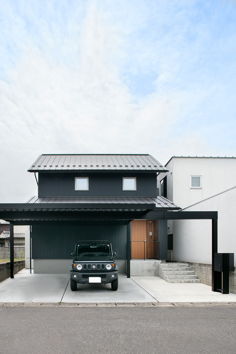 岐阜駅にほど近く、一本路地を入った住宅街に位置するこの『建築』。元々t様は少し離れた都市にお住まいでしたが、職場までの近さ、またご親戚もお近くとの事でこの場所での建築を計画されました。