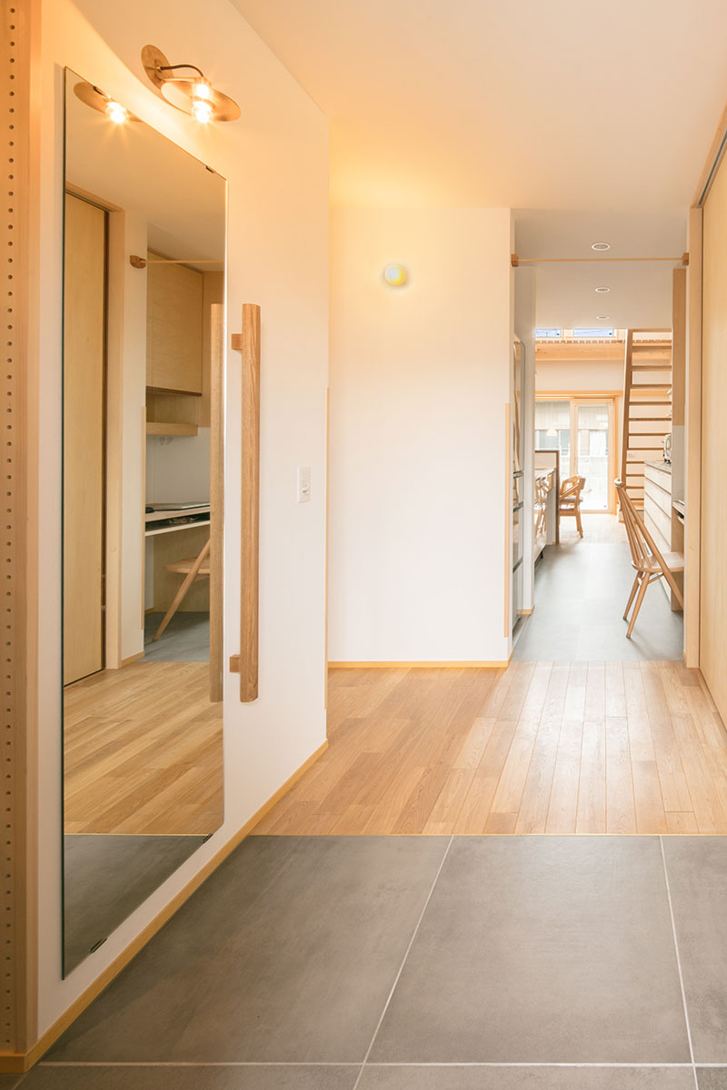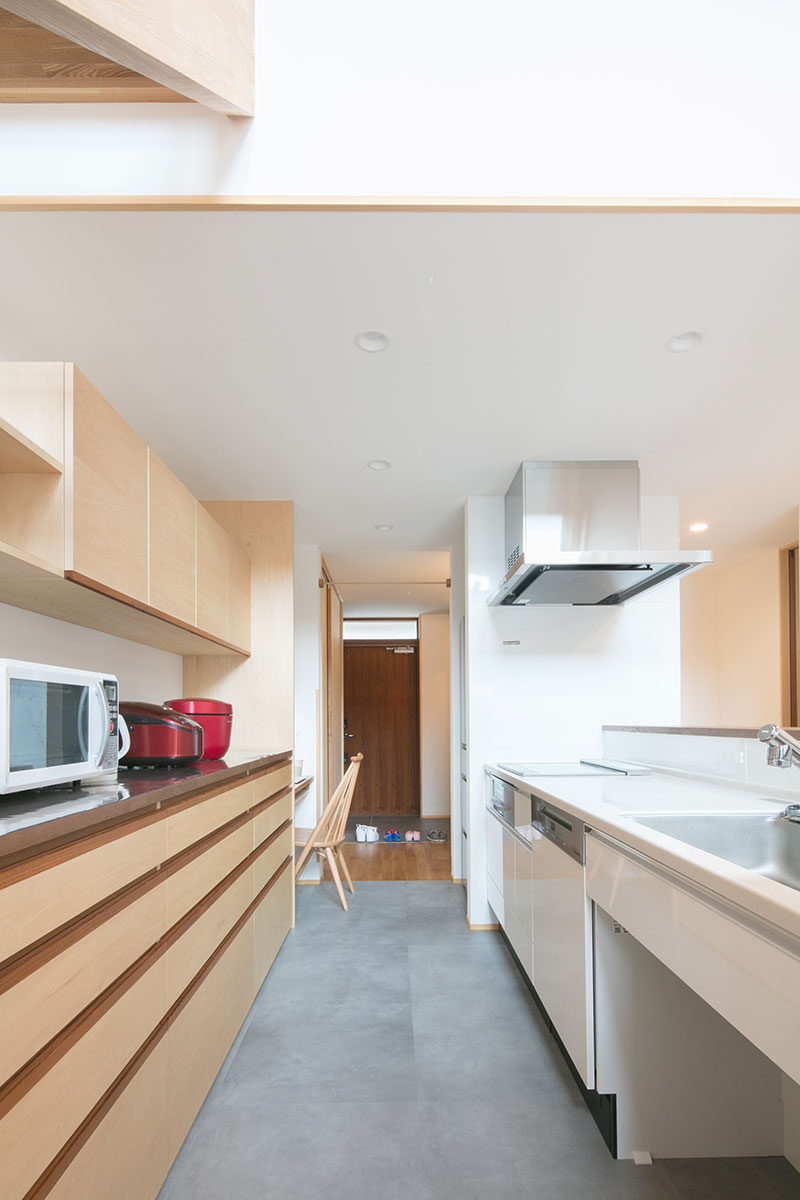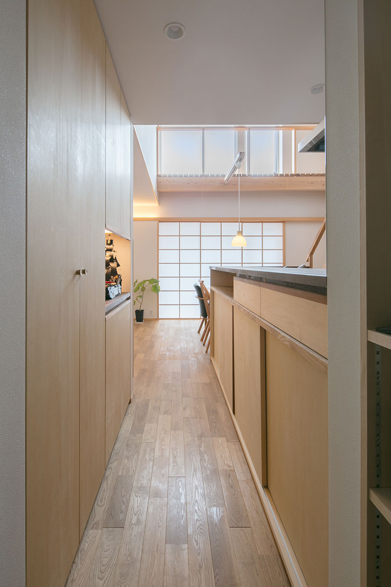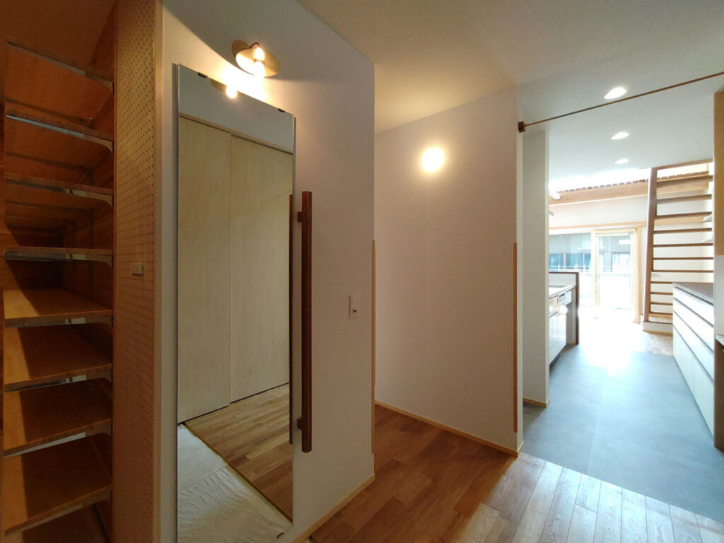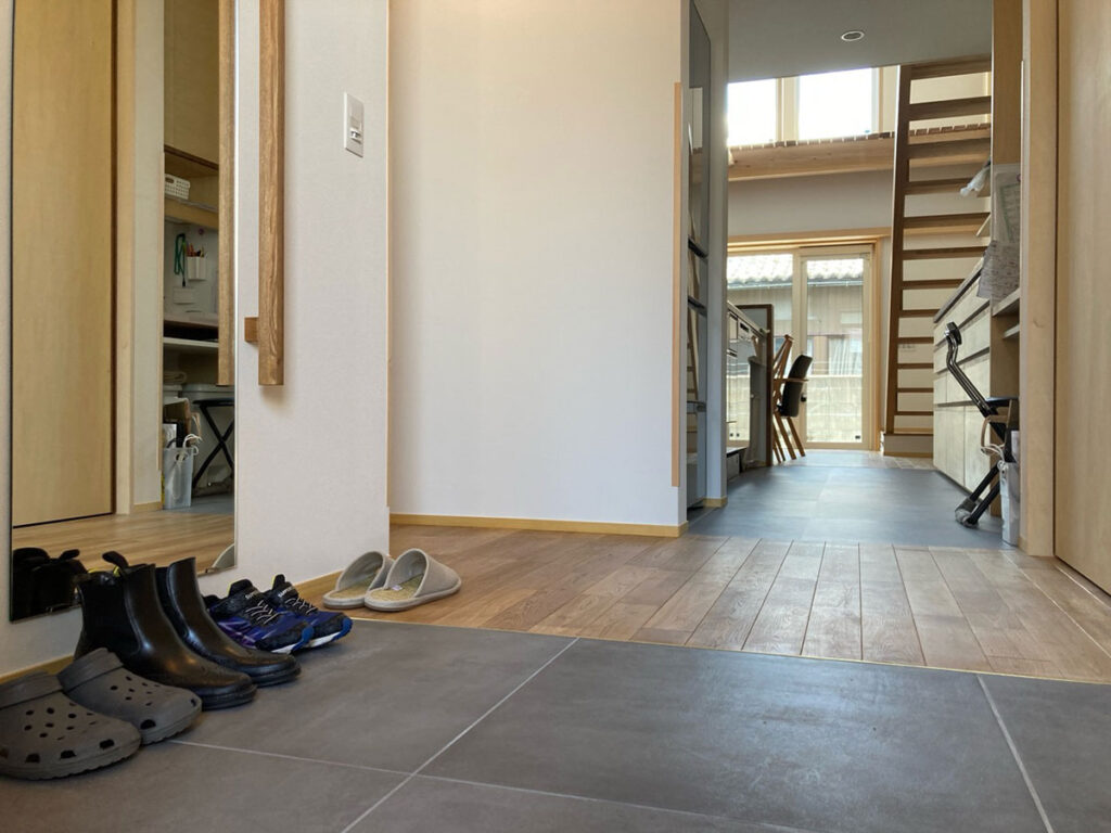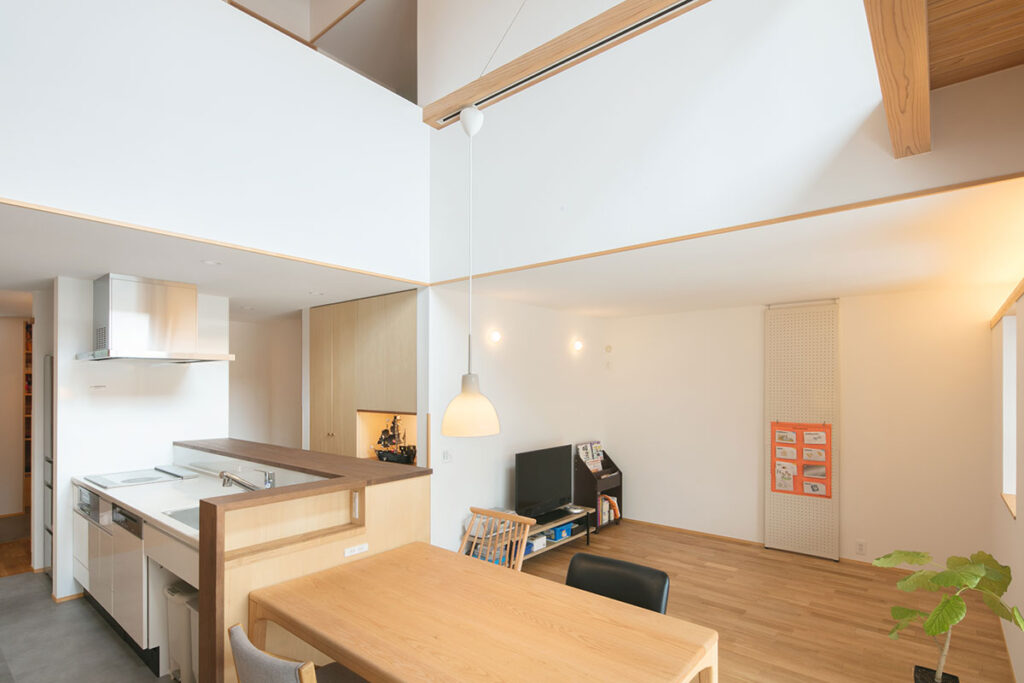 岐阜駅にほど近く、一本路地を入った住宅街に位置するこの『建築』。元々t様は少し離れた都市にお住まいでしたが、職場までの近さ、またご親戚もお近くとの事でこの場所での建築を計画されました。