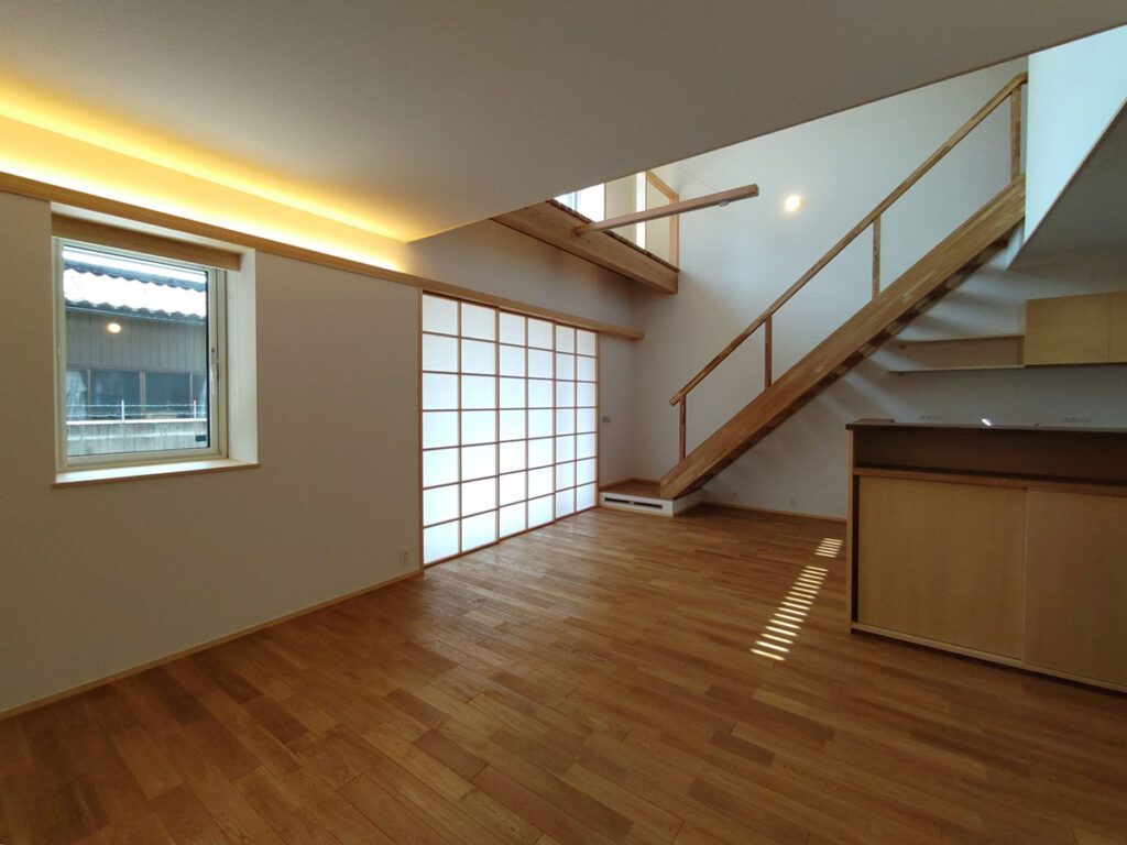 | 内装 | 床:ナラ材、塩ビフロアタイル 内壁:エコクロス貼 天井:エコクロス貼、杉材 |