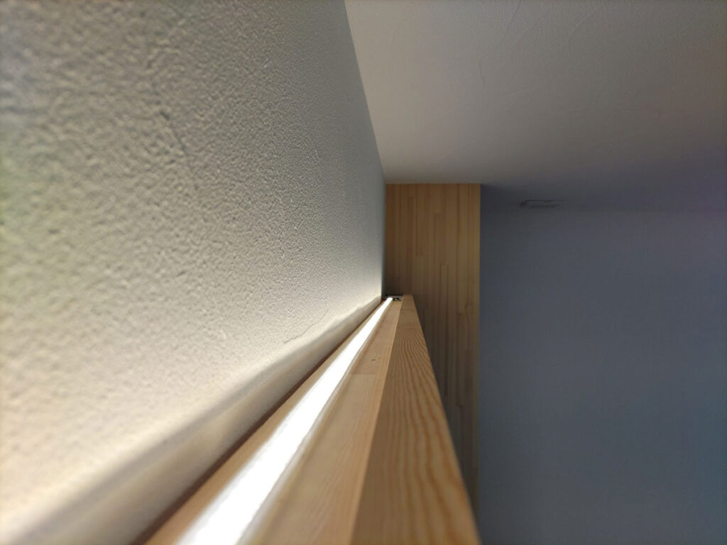 近年お付き合いの多い、SNSを活用しての情報収集に卓越したお客様の例に漏れず、y様も非常に研究熱心。どうすれば省エネに特化した住宅を建てる事ができるかとご検討の末、断熱性能や設備計画に関しては屈指の提案力を持った設計事務所に依頼されました。突き詰めた設計の効果は絶大、エアコン一台で室内は極めて快適な温熱環境にできあがりました。