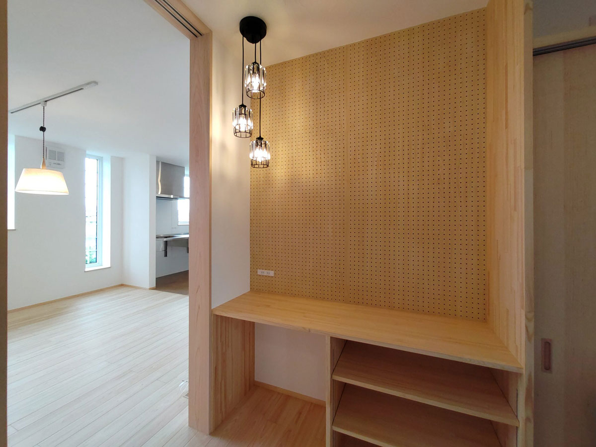 内外装はごくシンプルにまとめられながらも、ちょっとした細部にy様の考え方とこだわりが見られる趣のある仕上がりです。